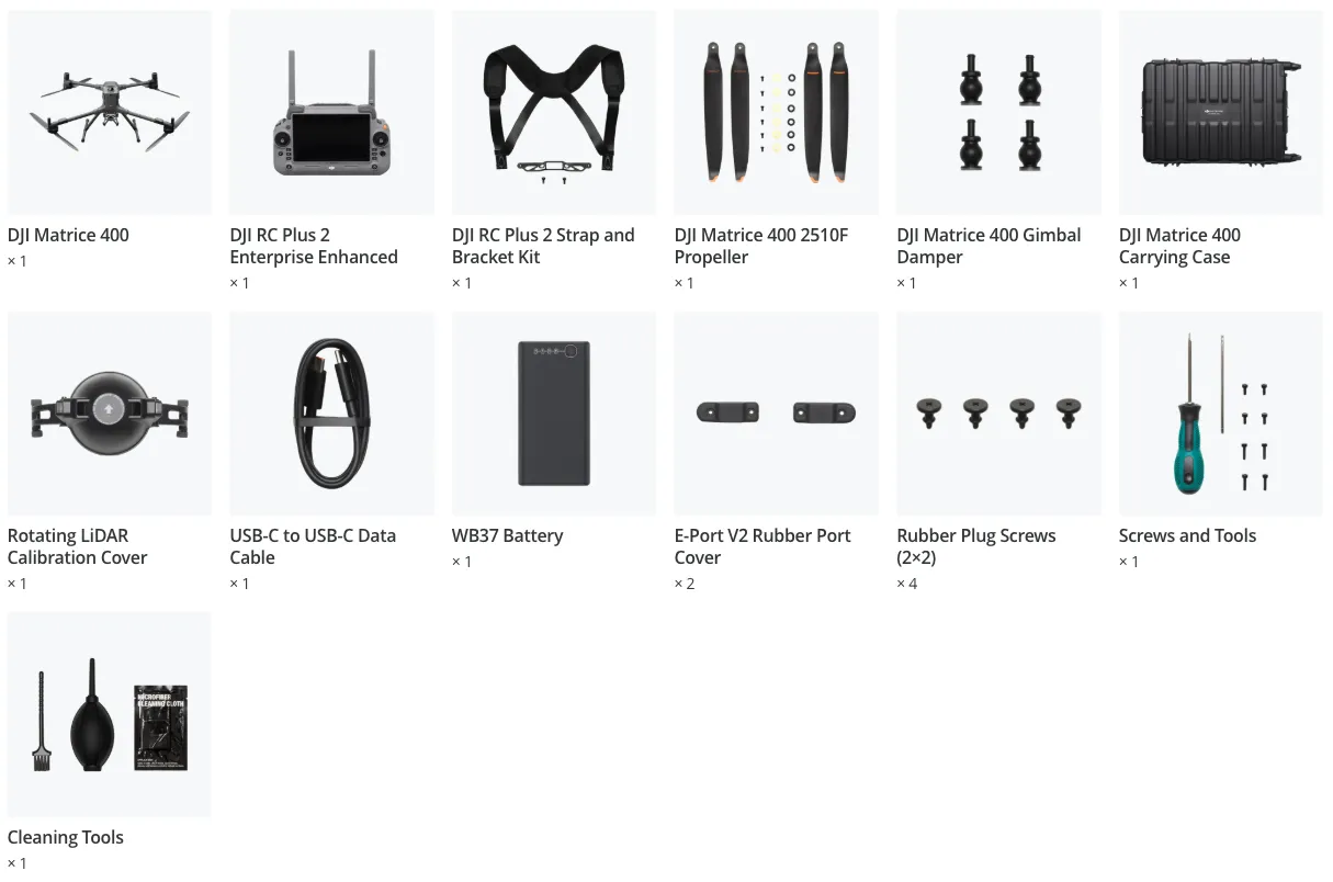 - Tilbehør: Zenmuse S1 (projektør), Zenmuse V1 (højttaler), Manifold 3, RC Plus 2 sub2G SDR modul, Cellular Dongle 2