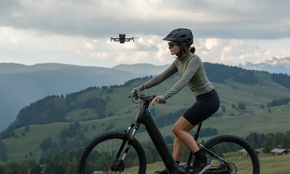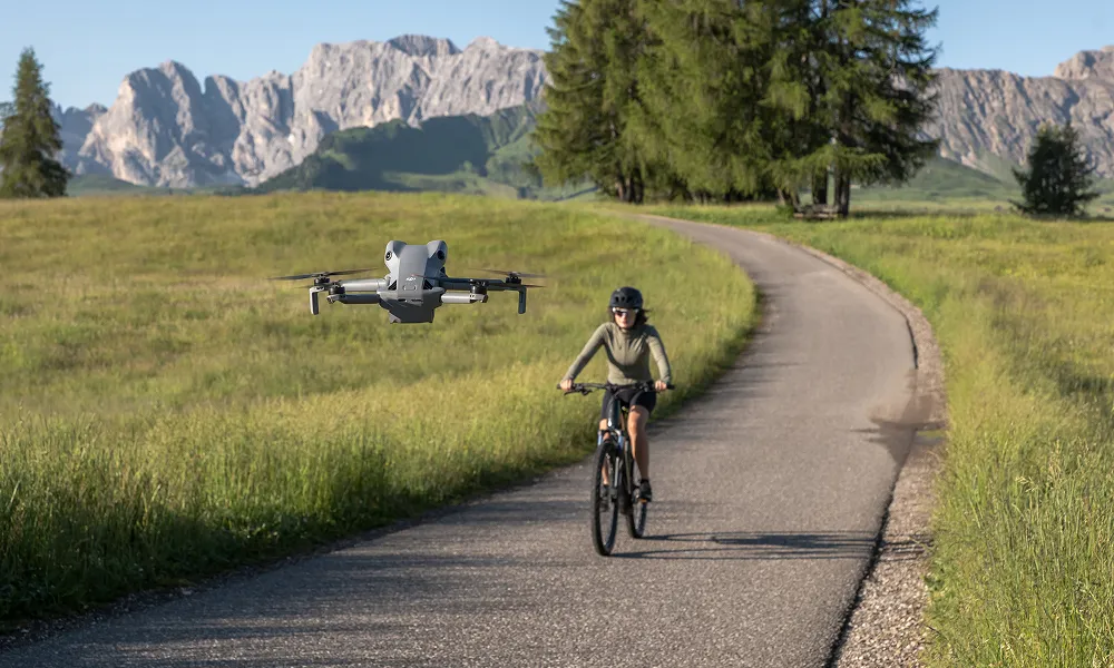 Mini 5 Pro registrerer sportslige scenarier og vælger automatisk Cykel- eller Standardtilstand for optimal indramning og sporing. I Standardtilstand følger dronen din rute i realtid og opretholder en stabil højde og afstand. I Cykeltilstand reagerer den hurtigt på sving og hastighedsændringer for at holde dig låst inde og perfekt indrammet.