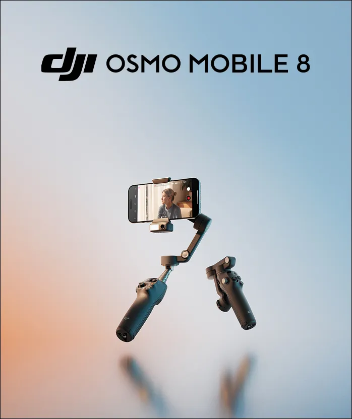 Optag stabil film fra flere vinkler med 360° panorering og 3-akset stabilisering. Osmo Mobile 8 sporer også automatisk motiver, hvilket opfylder de forskellige og kreative behov inden for kommerciel filmproduktion og leverer fantastiske filmiske resultater.