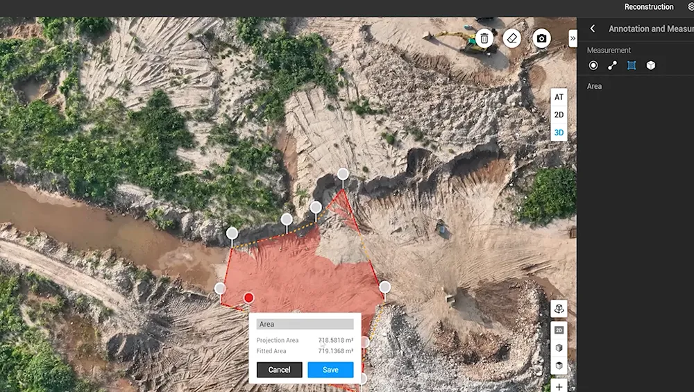 Terra giver dig brugervenlige værktøjer til at markere og måle direkte i 3D-modellen, så du hurtigt kan få præcise mål på punkter, linjer, arealer og volumener. Du kan klikke hvor som helst i modellen og straks se, hvor billedet er taget, samt de originale fotos. Det gør det nemt at skifte mellem 3D-overblikket og billeder fra stedet, så du kan kontrollere detaljer og dokumentere forhold hurtigere og mere sikkert. Resultaterne kan eksporteres i flere formater, så de er klar til brug i projektering, opmåling og rapportering.